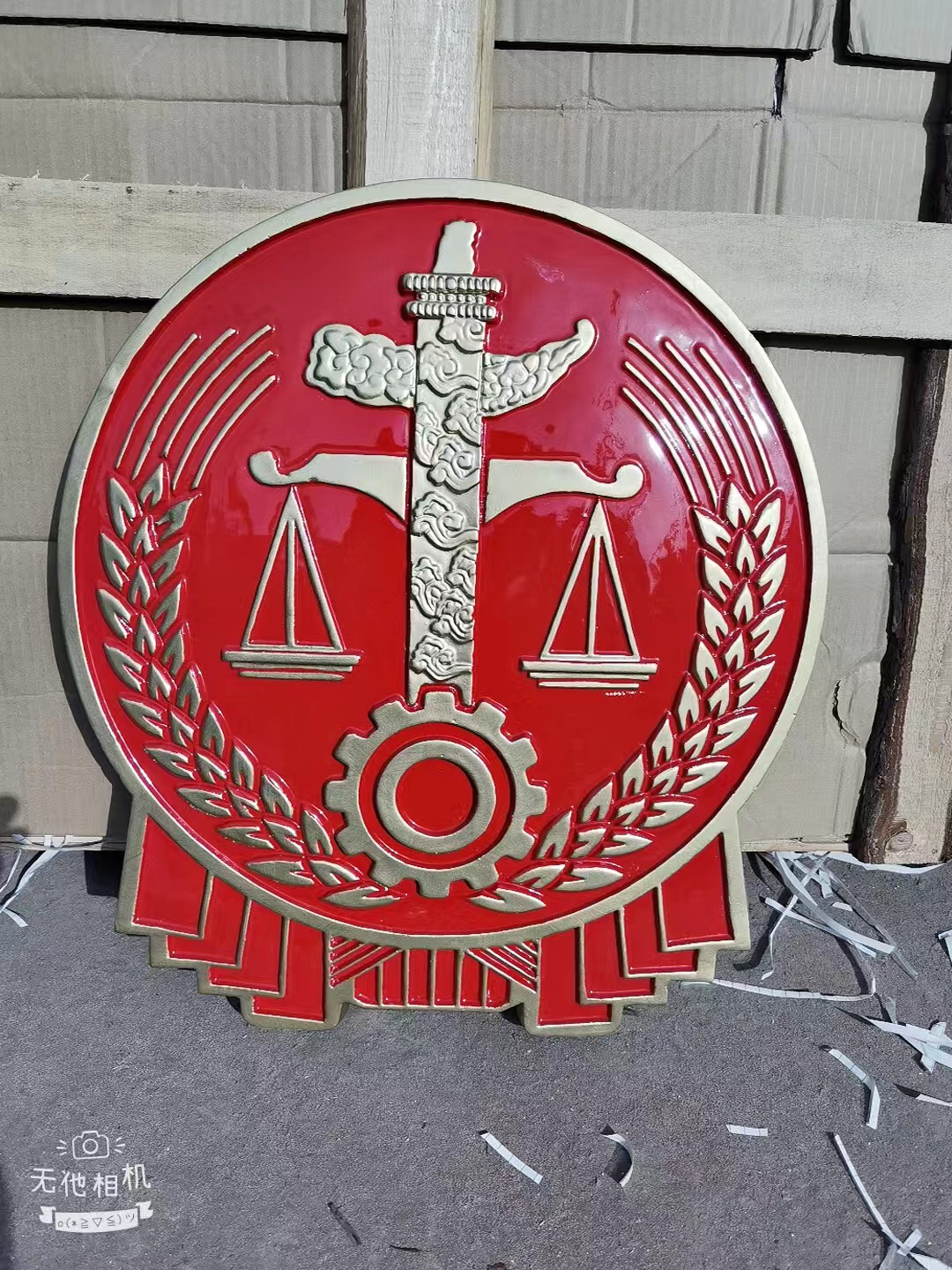 安装方式 | 湖北法徽生产厂家-小徽章背面都配有穿挂耳孔,钉子钉在墙上,再用穿铁丝钢丝,适合安装在办公室/会议室会场等。大徽后面为膨胀螺丝孔,安装需要定做铁架,铁架固定墙面上后,再将徽章固定在铁架上。玻璃幕墙也是需要铁架方式安装。 |